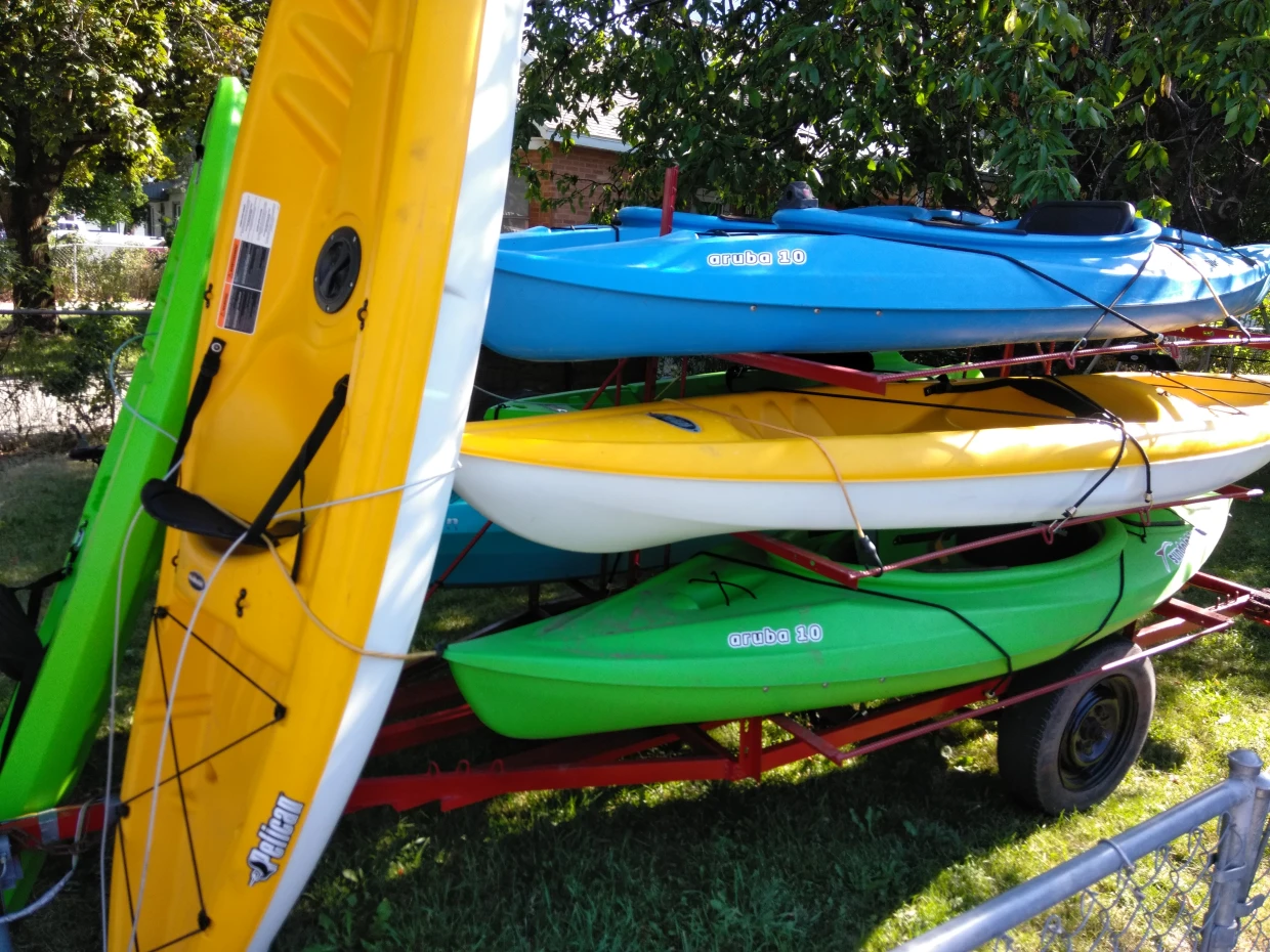Includes Life Jackets and Paddles and Trailer for easy transportation. $130